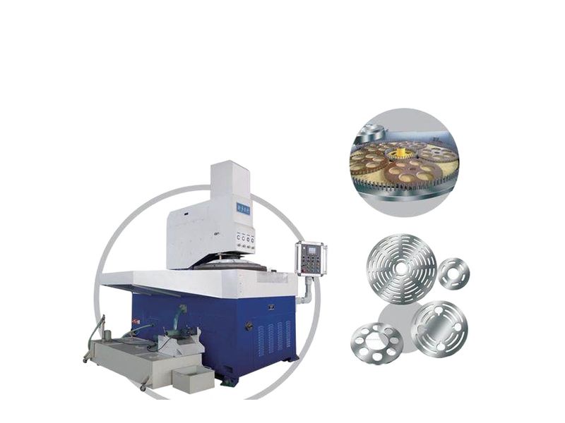 本機床采用立式布局,主機床身采用鑄鐵構(gòu)件,減少加工時振動,確保加工精度。上、下研磨盤及內(nèi)環(huán)均采用交流變頻無級調(diào)速,保證了研磨各種材料和各種形狀工件的工藝轉(zhuǎn)速。氣動控制實現(xiàn)上研磨盤擺入、擺出和上升、下降動作,便于操作。采用預(yù)壓、主壓、后壓三階段壓力控制,壓力值可任意調(diào)整并可自動轉(zhuǎn)換。